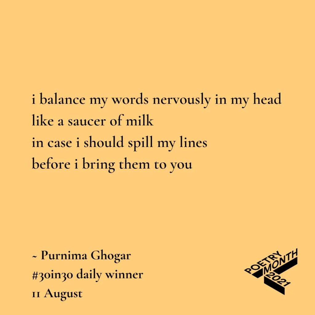 Winner of the day 11 #30in30 daily poetry competition 2021
